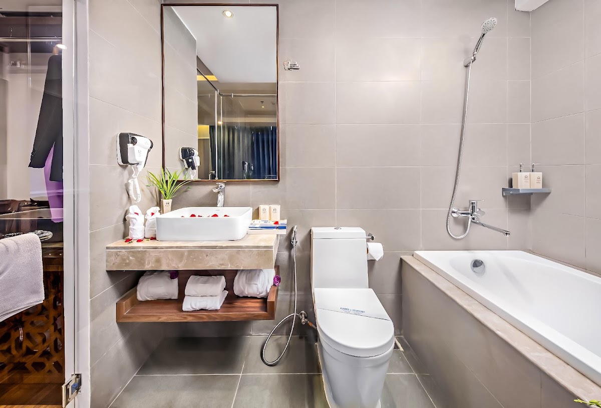 Stayed here with my family for 7 nights and 8 days, and we had a great experience! They even upgrade 1 of the rooms we booked with them to a bigger room. Location: Super convenient—lots of restaurants around, a convenience store right beside the building, and just a 3–5 min walk to the beach. Easy to get around. Staff & Service: Staff were very friendly, hospitable, and quick to assist. Check-in was smooth even though I booked the wrong room at first. They welcomed us with complementary drinks that's very delicious and they always checked if we were comfortable with our stay daily. They also provide fast service when we requested extra towels, utensils, and food reheating. Room & Bathroom: Beds were super comfy, room was cozy and clean, Wi-Fi was strong (my sister worked remotely with no issues). Bathroom was clean with good water pressure, hot water, and fresh towels daily. Amenities: Pool, gym, sauna, rooftop bar lounge, plus a restaurant with delicious breakfast buffet. Cleanliness & Comfort: Rooms were cleaned daily, and the hotel was peaceful and quiet—perfect for relaxing after tours. Value: Budget-friendly but the service felt premium. Definitely worth it. Overall: I highly recommend Halina Hotel when visiting Da Nang. We’ll definitely come back here!